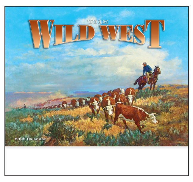 2023 Wild West Promotional Wall Calendar 10 7 8 X 18 Staple Bound Drop Ad Imprint